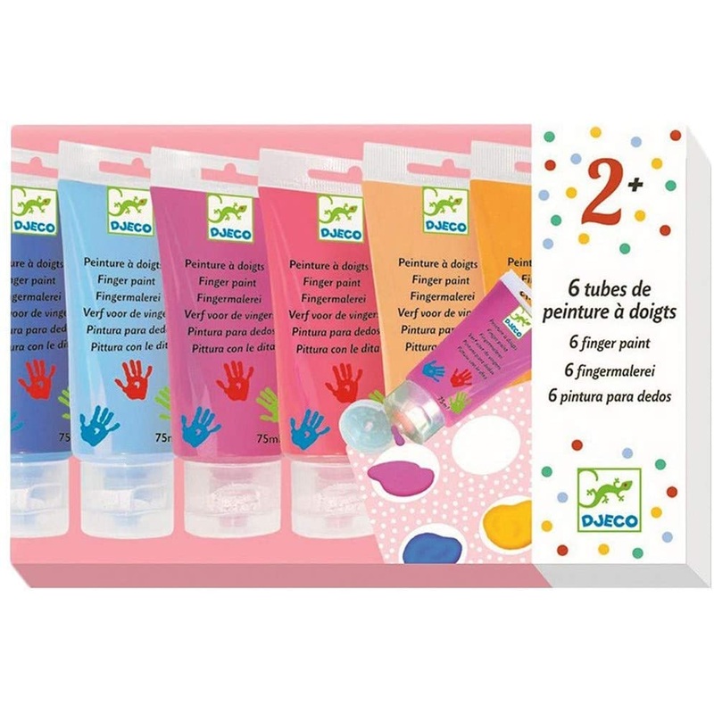 - Contents: 6 large tubes of finger paint (6x75ml): blue, light blue, pale purple, pink, beige and yellow, plus 1 palette.