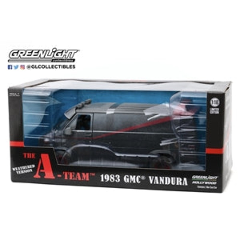 Take on any adventure with the A-Team 1983 GMC Vandura Weathered 1:18 Die Cast. This detailed and sturdy die cast vehicle will have you feeling like part of the team. Perfect for collectors and fans alike. (Vroom vroom into action with this awesome replica. Mr. T not included.)