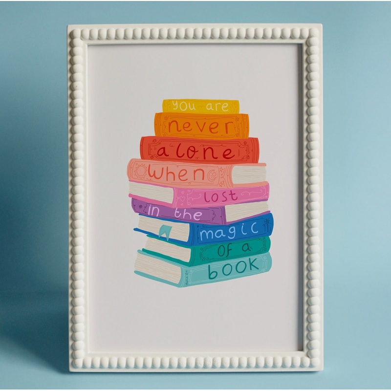 Celebrate the magic of books with this colourful art printperfect for any reading corner, bookshelf, or playroom perfect for any book lover either young or old. A charming piece of room decor, it inspires positivity and a love for reading. Ideal as a children’s gift, christening gift, or birthday gift, this bookish print is a trending favourite for little readers and dreamers alike.