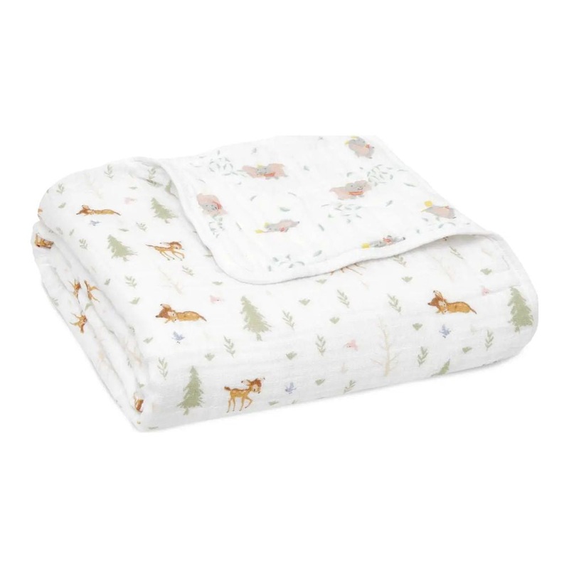 Four layers of cotton muslin create the perfect cozy cloud for your little. Aden+Anais’ blankets are soft, warm, absorbent + lightweight – the total package! Great for snuggling, tummy time, picnics, or walks in the stroller.