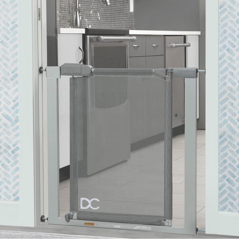 Easily child proof your home with the Delta Children Adjustable Baby Safety Gate. This pressure mounted gate requires no hardware or tools to install and exceeds a 30-pound pushout force without damaging your walls (unlike other brands!). The adjustable frame comes with two included extension pieces that allow the gate to fit openings between 28.5 inches and 40 inches effortlessly. This gate helps create child-friendly areas within your home, use it at the bottom of the stairs, doorways or hallways–the pressure mounted design makes it easy to move around the house. Its cool grey metal frame and swing-open door with see-through mesh allows you to keep an eye on your child and walk through whenever needed. Great for kids or pets. Stop use when your child can climb over the gate.