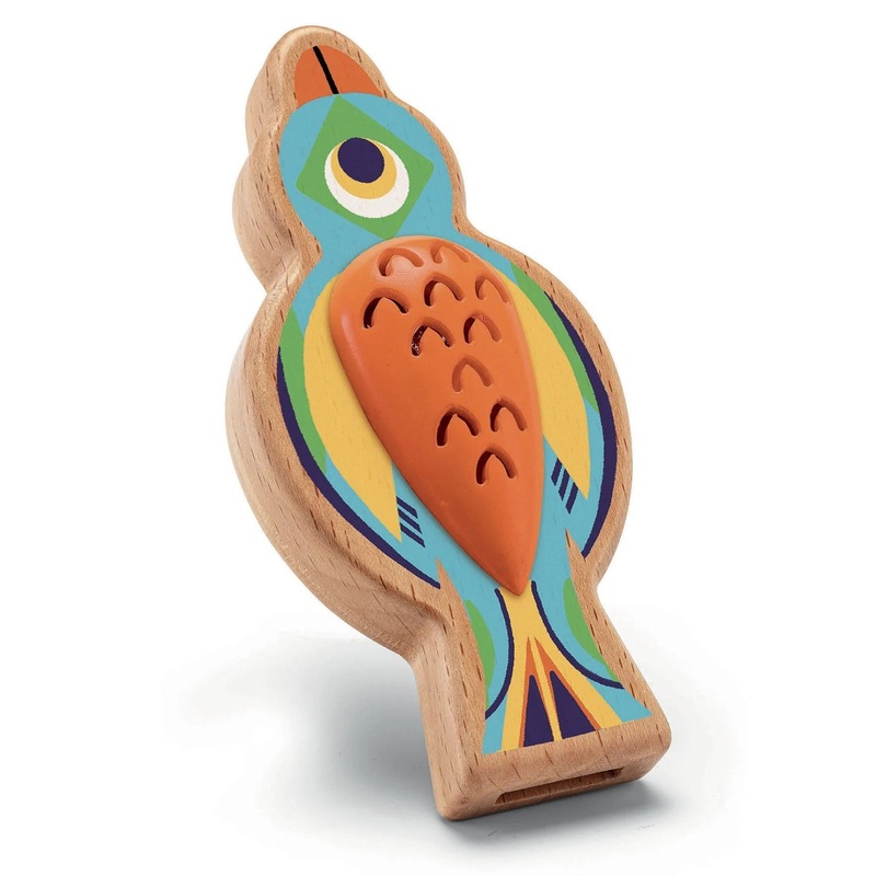 A beautiful all-wood kazoo in the shape of a colorful bird. A very accessible instrument for budding musicians often found in jazz and rock. The child makes a sound by humming air at the end. An instrument for starting to appreciate music, learning to reco