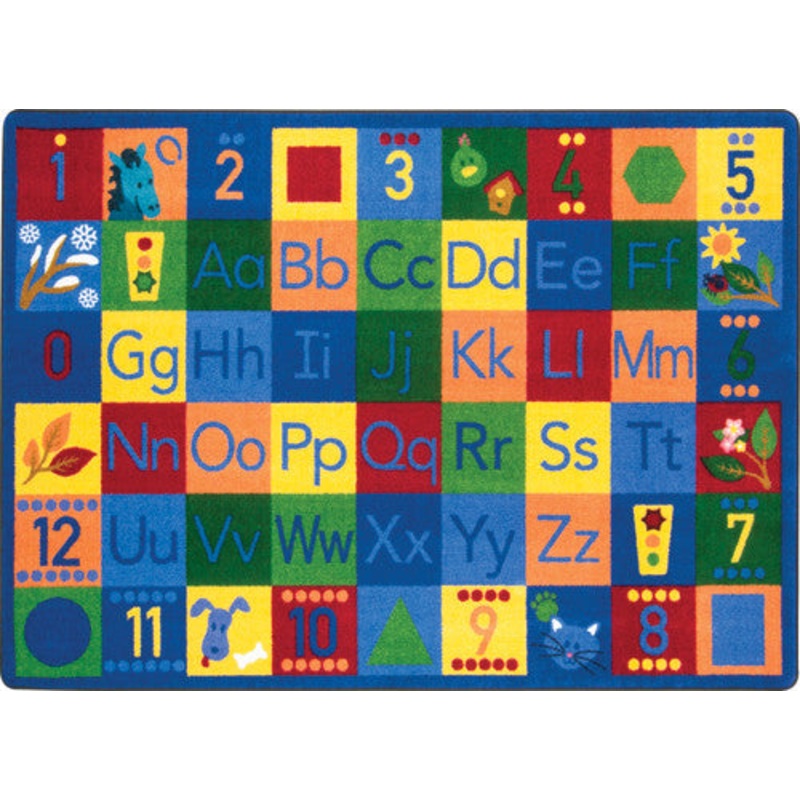 Children will find numbers, upper case and lower case alphabet, seasons, shapes, animals, and fun on this appealing classroom rug.