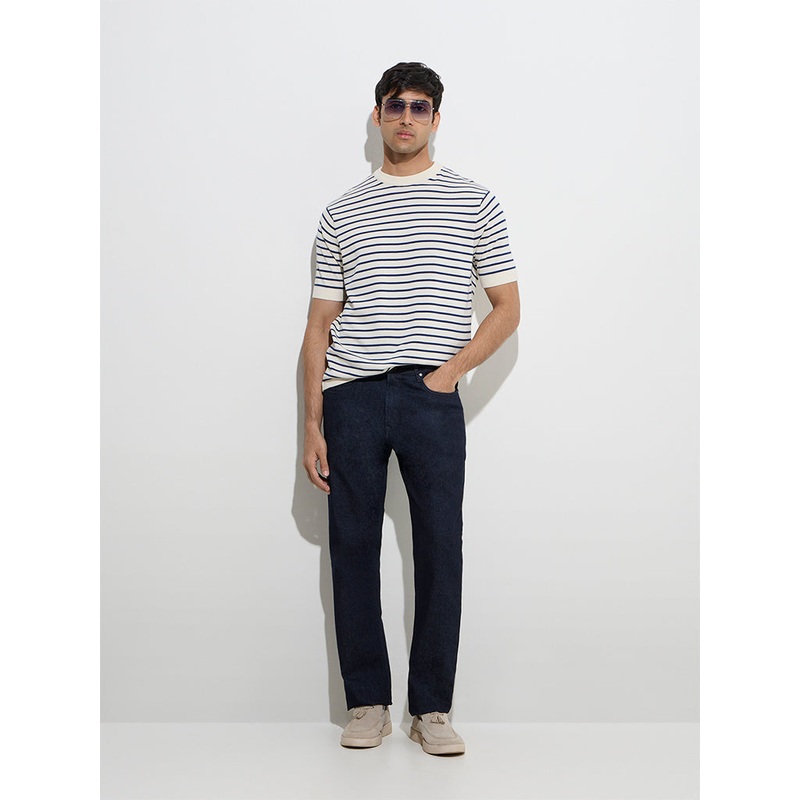 This off-white t-shirt from Ascot is fashioned with timeless stripes for a classic touch. Crafted from pure cotton, it offers a relaxed fit with a crew neckline and half sleeves, providing effortless comfort throughout the day.