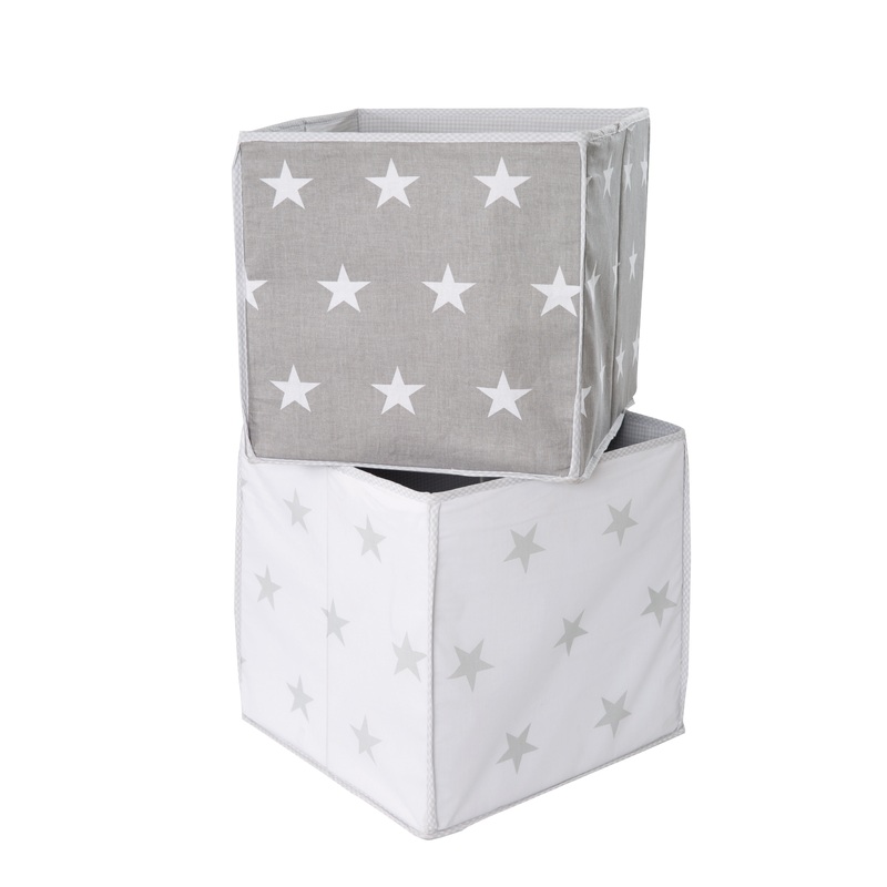 LSQL68124609Aufbewahrungsbox 'Little Stars', Canvas-Box fr Spielzeug, Deko, grau mit weien Sternen