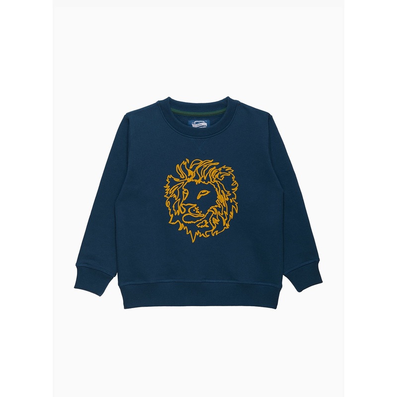 Our iconic Augustus lion is now available in a bold contrasting mustard, set against our stylish and comfortable navy blue sweatshirt. Offering a more relaxed look and feel with a twist, this cotton-rich style comes complete with soft fleecy lining and is perfect for everyday wear.