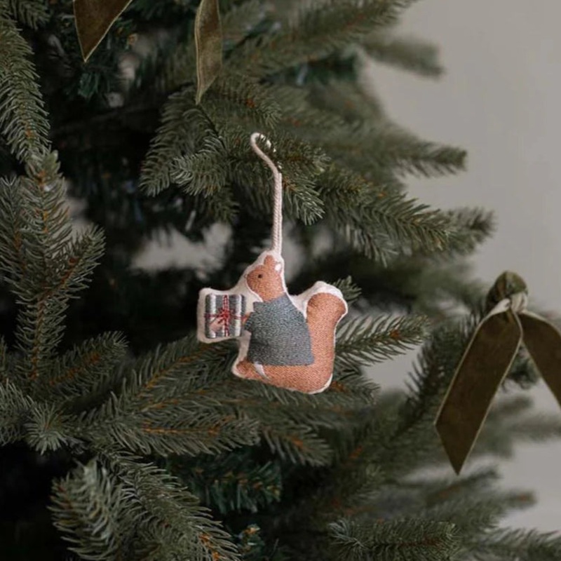 This single embroidered organic cotton tree decoration by Avery Row will add a touch of fun to any Christmas tree. In the shape of an adorable Squirrel delivering gifts, these beautiful Christmas Decorations are marvellously festive!