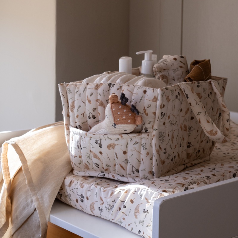 Theperfect addition to your baby changing station.This Avery Rowquilted nappy caddy has 2 outer pockets and 3 inner compartments, perfectly sized for storing nappies, creams and wipes. Handles make the caddy portable so your baby changing essentials can always be close to hand.
