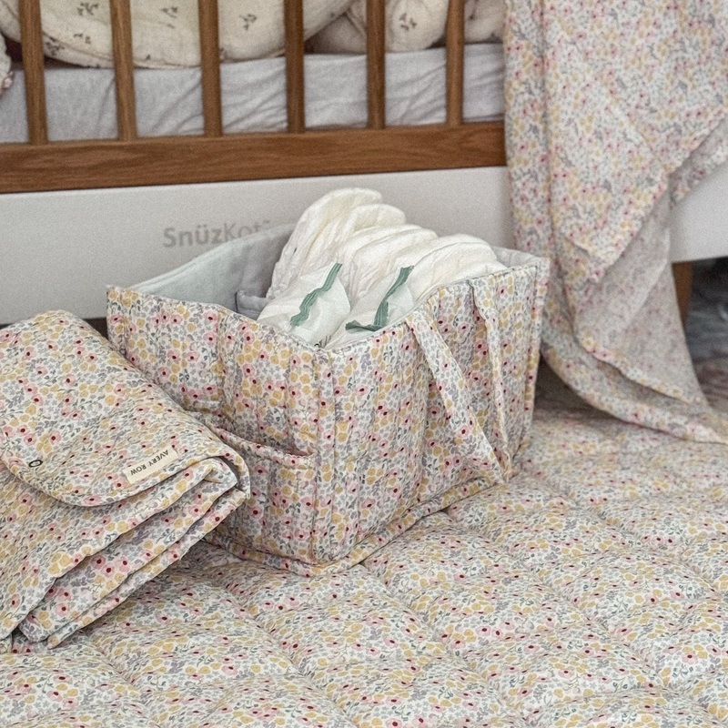 Theperfect addition to your baby changing station.This Avery Row quilted nappy caddy has 2 outer pockets and 3 inner compartments, perfectly sized for storing nappies, creams and wipes. Handles make the caddy portable so your baby changing essentials can always be close to hand.