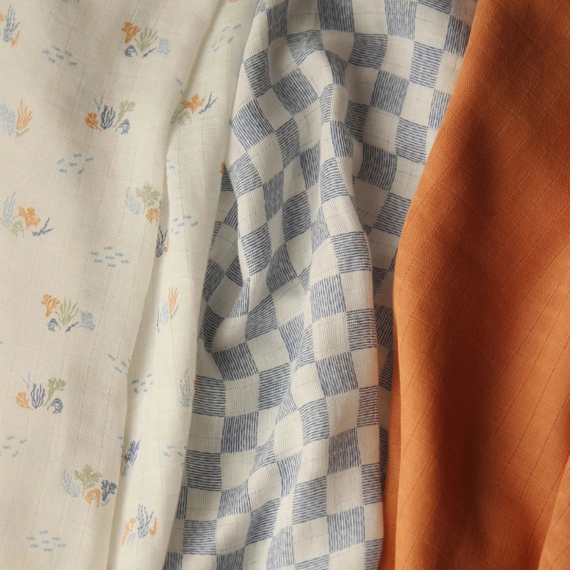 This set of 3 muslins features Avery Row’s beautiful coastline print, inspired by the timeless charm of the British coast through a nostalgic childhood lens.