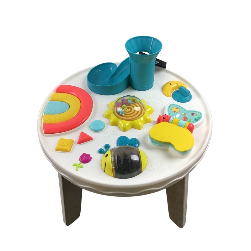 “Colorful sensory table that is the perfect size for your curious tot! 17.4 Inches (H) x 20.1 Inches (W) x 20.1 Inches (D). “