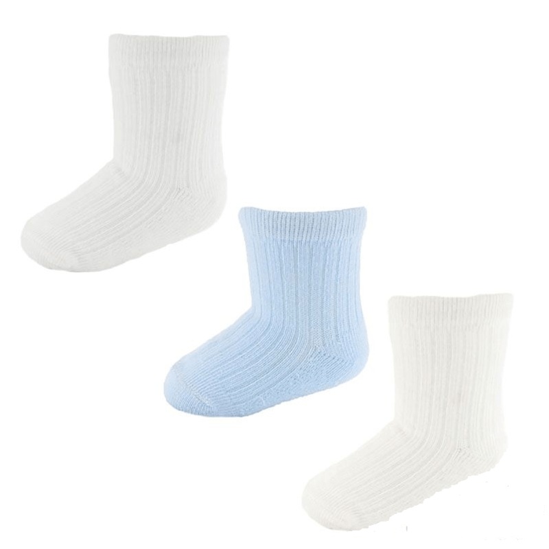 Baby Boys, Ankle sock pack of 3 Ankle Socks one White, Blue and one cream pair.