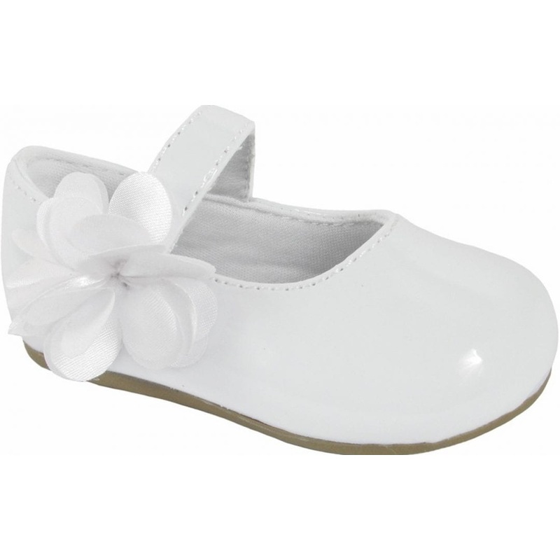 These Baby Deer Linley shoes offer a unique style with their white patent PU upper and TPR sole. Featuring a skimmer with a flower strap ornament, they will be sure to make a statement. Perfect for toddlers, the Linley shoe adds an elegant touch to any outfit.
