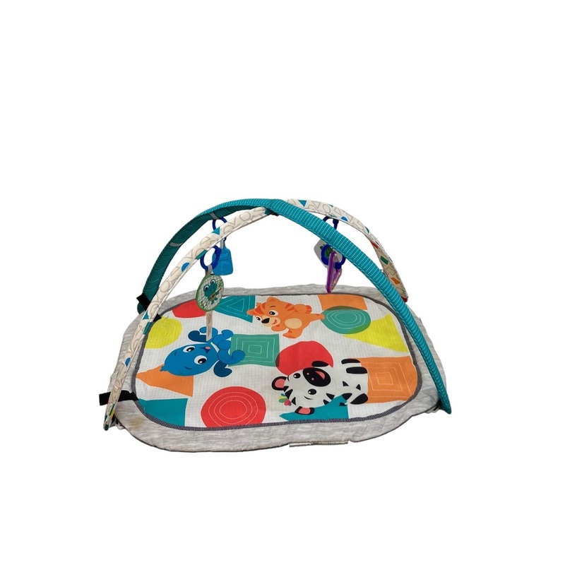 Condition: Gently Used "Add some sweet music to playtime thanks to the attachable piano on this colorful activity gym. And if you need a little quiet entertainment, simply remove the electronics and let your little one enjoy the dangling toys or some tummy