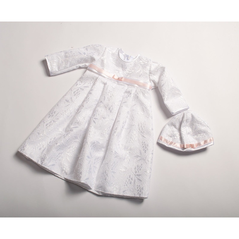 This handmade white lace dress with pink ribbons, long sleeve and whitehat set is a perfectformal outfit for baptism and many other celebrations.