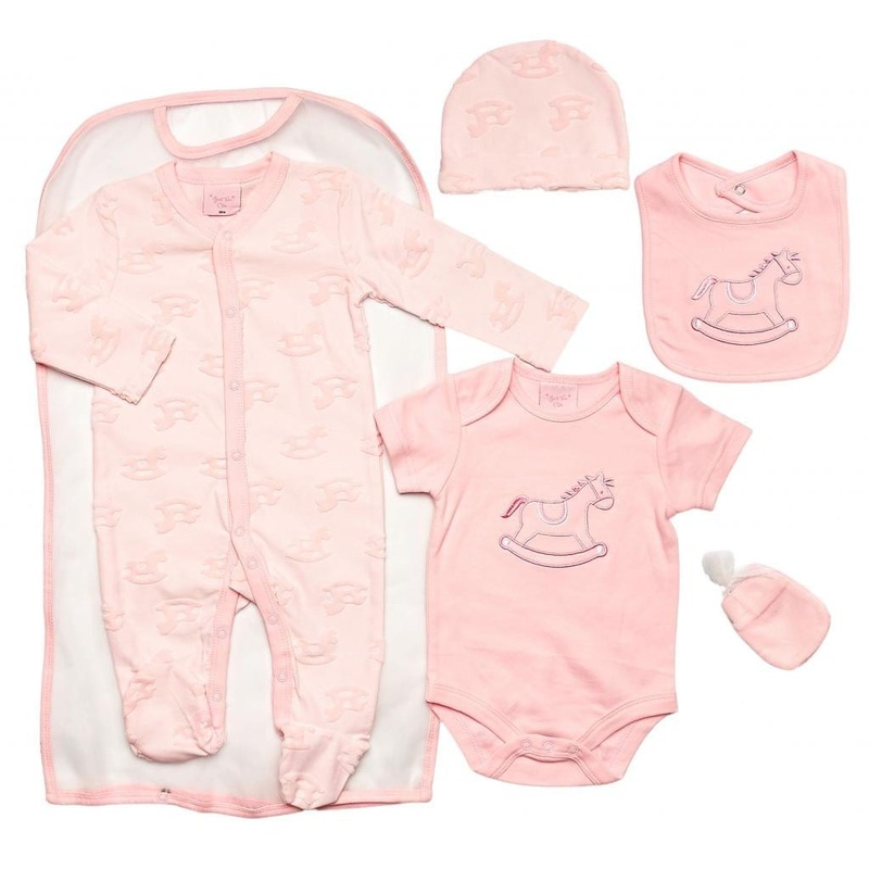 Baby Girls’ Pink 5-Piece Layette Set Rocking Horse Design