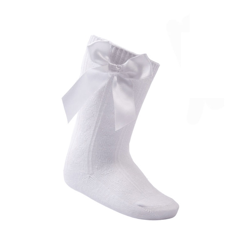 I486311839Baby Girls White Knee High Bow Socks