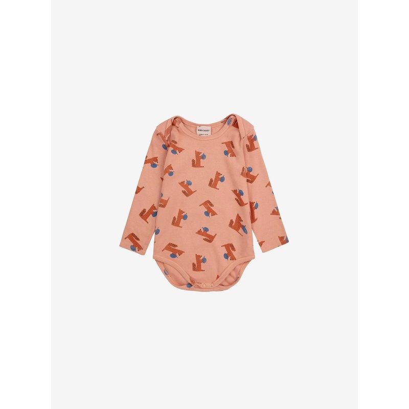 With a playful squirrel holding a blueberry in its tiny hands, our light brown “Hungry Squirrel” bodysuit is designed to inspire their innate curiosity. This garment will give them the freedom of movement they need during their games and mischief while keeping them warm under their clothes on their outdoor adventures.