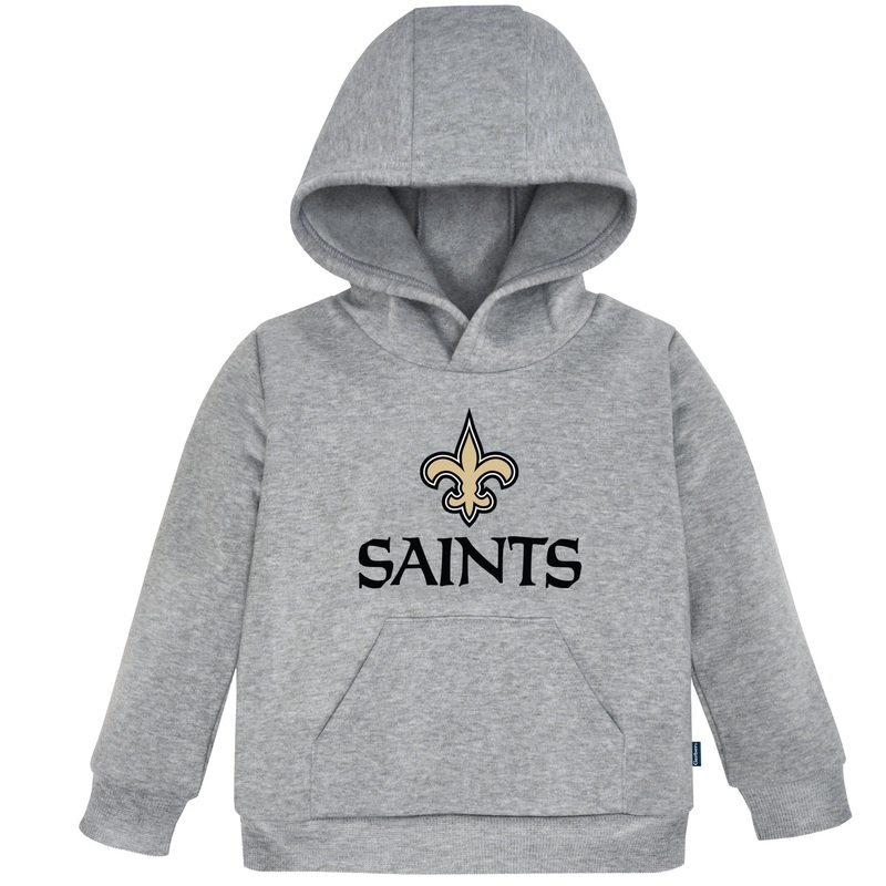 Even the smallest family members can get in the football spirit with our officially licensed New Orleans Saints hoodie. This hoodie is made to keep your little one comfortable throughout the entirety of the game or while playing with friends. Featuring an applique team name and logo front and center, cuffed sleeves and banded bottom, this is the perfect New Orleans Saints hoodie for infants and toddlers, as it may be worn comfortably all on its own or layered with a shirt for extra warmth. The hoodie also has a functional front pocket to keep those hands warm when it’s a little chilly outside. This Saints team hoodie is machine washable to take care of any snack spills and get you back to the game fast!