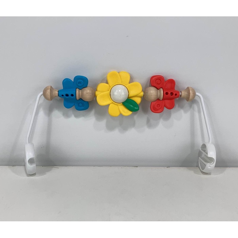 “A cute and fun toy that attaches to your favorite Bjorn bouncer! Its brightly colored shapes are fascinating for your baby to look at and play with. The toy bars features are easy to spin around, and the funny eyes will make your baby smile and laugh. Playing also helps your baby discover physical capabilities and develop motor skills. The toy bar is easy for a grown-up to attach and remove, and fits both Bouncer Balance Soft and Bouncer Bliss.”