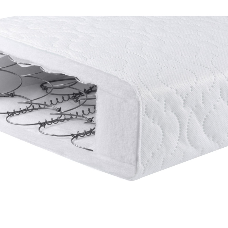 Introducing the BabyMore Deluxe Spring Mattresscrafted with precision in Britain, this 10cm thick mattress is designed to offer optimal comfort and support for your little one. The traditional Bonnell spring unit is encased in superior-grade dent-resistant nursery foam, promoting a natural sleep posture and ensuring a restful night’s sleep.