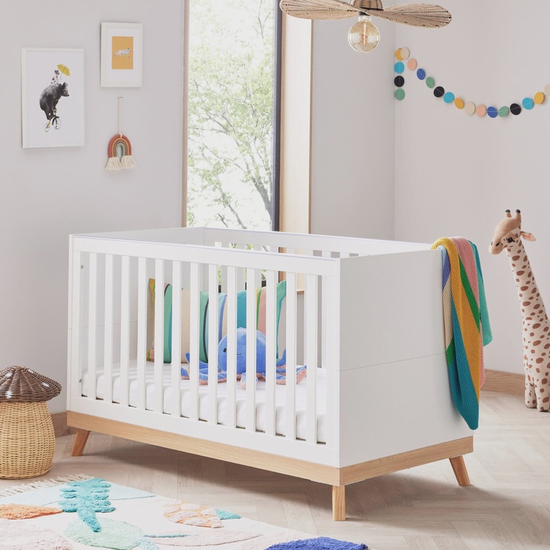 Babymore Mona White Cot Bed Scandinavian Style Meets Practical Comfort