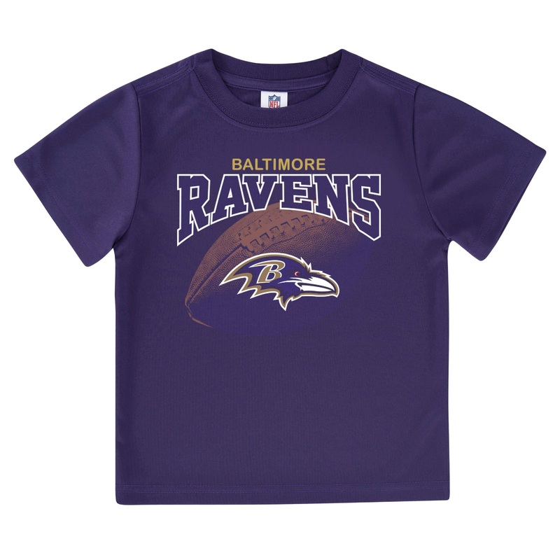 Come on, Ravens! Get the smallest family members ready to cheer with our officially licensed NFL toddler tees. This product contains Repreve polyester made from recycled plastic bottles (or recycled content). Products made with Repreve help to conserve energy and natural resources. And, gives you another great reason to recycle. The tee features a comfy, casual crew neck to keep your little one comfortable throughout the entirety of the game (and the whole day long!). The screen print team logo is bright and bold and is featured front and center on the t-shirt. Its the perfect tee for warm game days and cool games days, as it may be worn comfortably all on its own or layered over to keep warm. This t-shirt is machine washable to take care of any game-time spills.