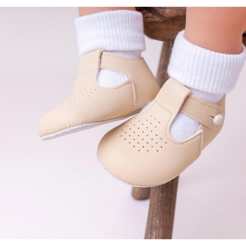 Beautiful unisex shoes with T Bar style and a stunning biscuit colour. They are a classic timeless design that will pair with so many outfits.
