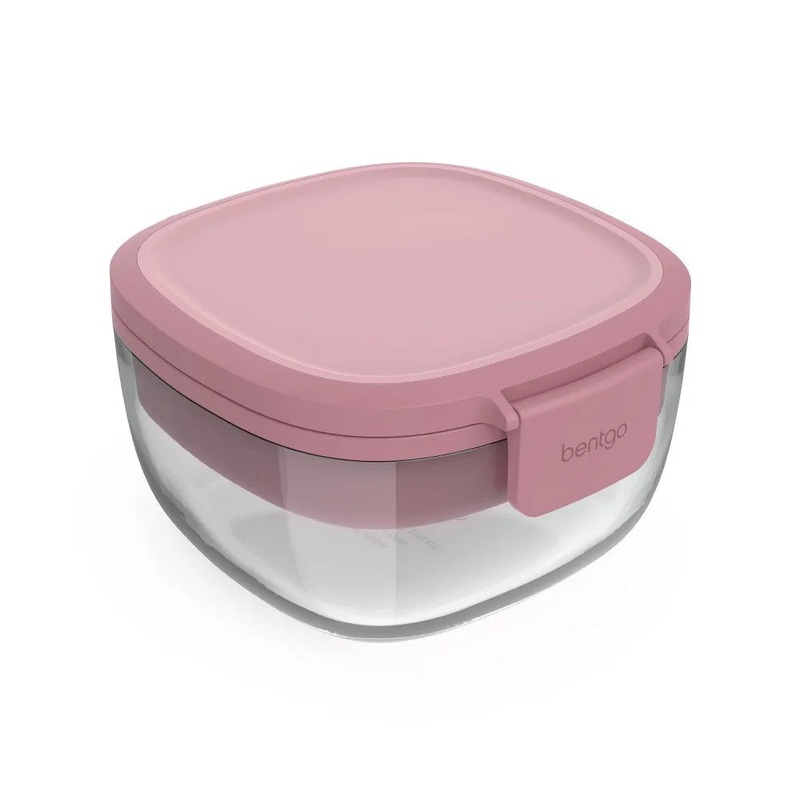 The glass leak-proof salad container from Bentgo features a container for dressing and a divided tray for keeping your ingredients separated until it’s time to eat, making it easy to enjoy your salad’s on the go.