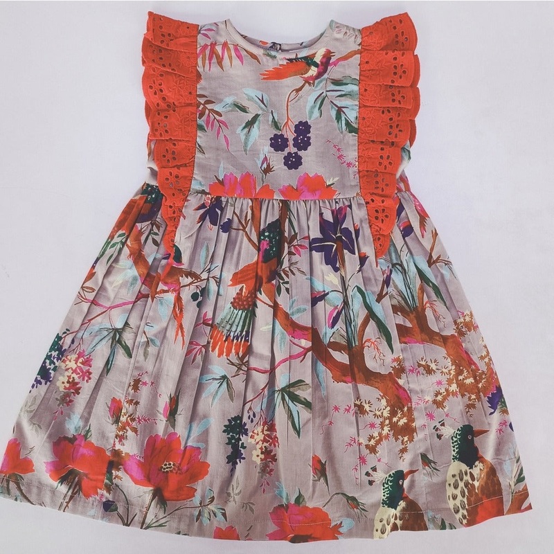 Bird Print Flutter Sleeves Dress