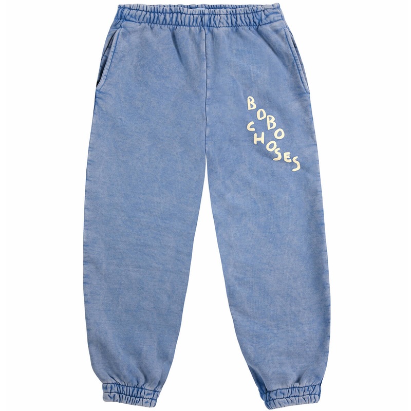 Blue Sweatpants by Bobo Choses. Timeless and versatile, these blue pants are crafted for everyday wear. Made from 100% organic cotton with fleece, they feature a regular crotch, elasticated waistband, and elasticated bottom. A loose fit, adjustable drawstring, patch pockets, and seam pockets ensure functionality. Lovingly crafted in Spain.