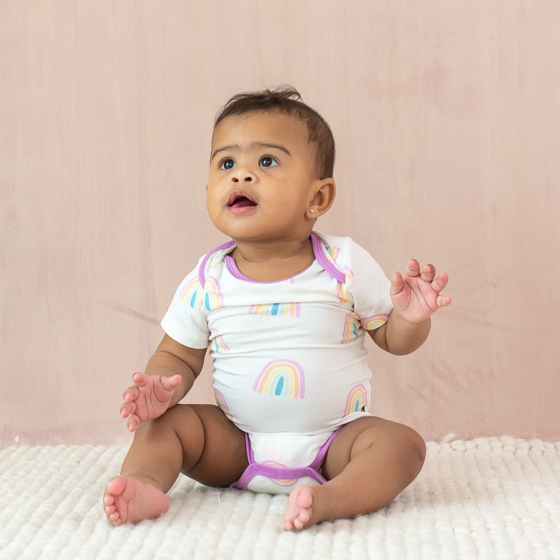 Our bamboo bodysuits are an essential piece for every mini wardrobe. Silky smooth and perfectly stretchy, these bodysuits work as both a standalone outfit or coordinating piece with any other Kyte Baby product.97% Rayon made from Bamboo, 3% SpandexBreathab