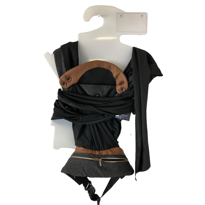 “This chic, soft and comfy and lightweight carrier is made for infants 8 to 35 pounds and is adjustable for all caregivers. Baby can be worn face in or face out. Folds into its own pouch for easy storage and transport.”
