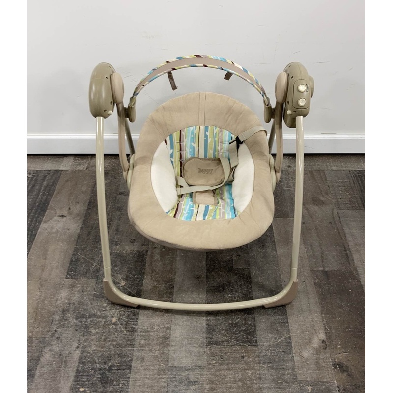 Condition: Gently Used "A battery-operated swing that is easy to fold down and move from room-to-room. This swing features two recline positions, five melodies and six swing speeds. "