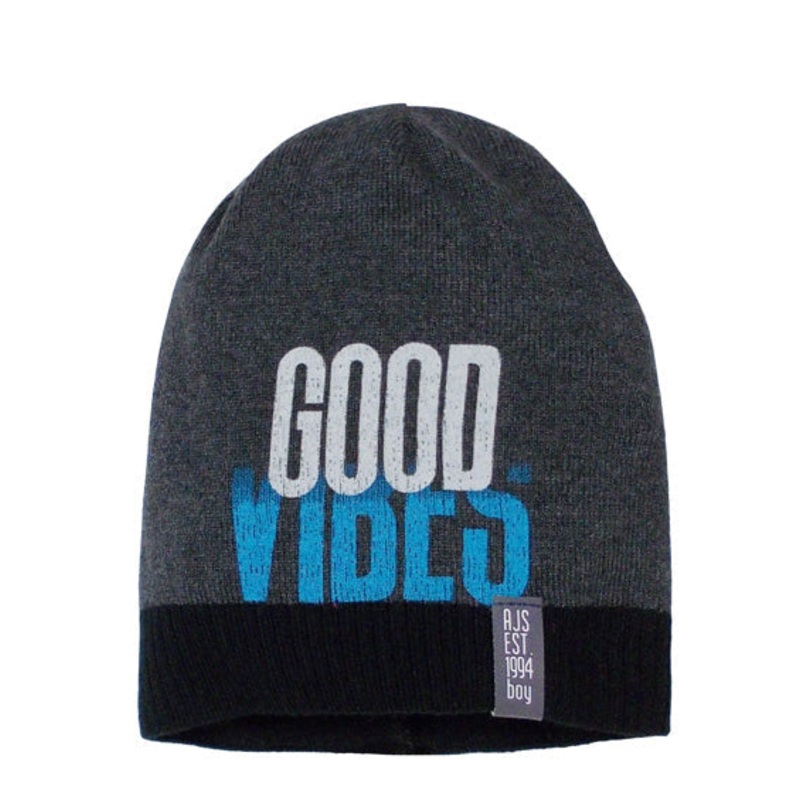 This graphite and black printed beanie will keep your child warm and the soft material will prevent skin irritation. The product is an excellent choice for colder days.
