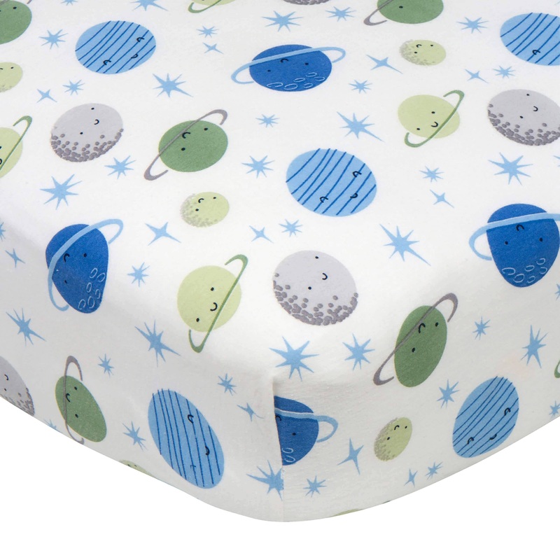 Our adorable cotton fitted sheets are perfect for sleepy babies and tired toddlers! Made with elastic edges, each sheet will fit safe and snug on any standard size crib mattress. The soft cotton is gentle on your little ones skin and easy-care for any middle-of-the-night accidents. We had our essentials independently certified with STANDARD 100 by OEKO-TEX so that you dont have to worry about harmful substances in your babys nursery. Pair this sweet sheet with our coordinating plush blankets, milestone blankets, changing pad covers, and flannel baby blankets.