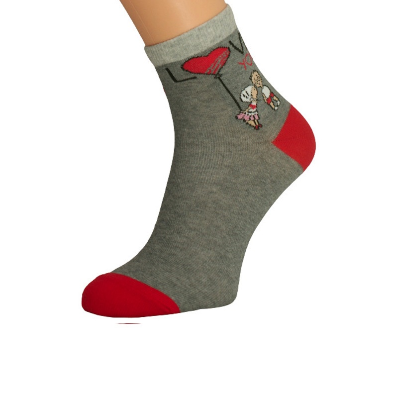 Beautiful gray socks made of high-quality fabric with “I Love You” print and red hearts. This product will keep your feet warm. These socks can also be a great gift for loved ones.