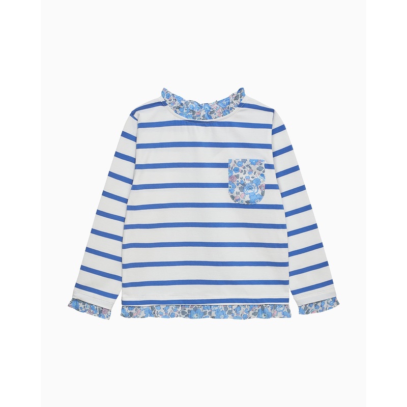 This classic Breton striped top has been elevated by the addition of neck, hem and cuff detailing, made in Liberty’s Betsy print fabric; a classic 1930s floral print featuring an all-over pattern of mixed flowers. Complete with matching front patch pocket, this top certainly takes the humble stripe to a whole new level. Pair with jeans and shorts for a classic, nautical summer outfit with a twist.