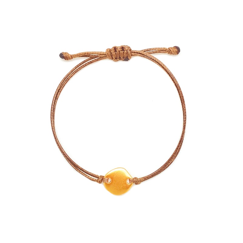 Get In The Flow with our newest water worthy bracelet! Weve modeled our bracelet to depict a perfectly smoothed river rock – inspiring us to let the river take us. This water loving bracelet is perfect for everyday and every adventure. 24k Gold plated sterling silver bracelet element Sturdy waxed polyester cord Adjustable closure – maximum width of 9Choose your cord color