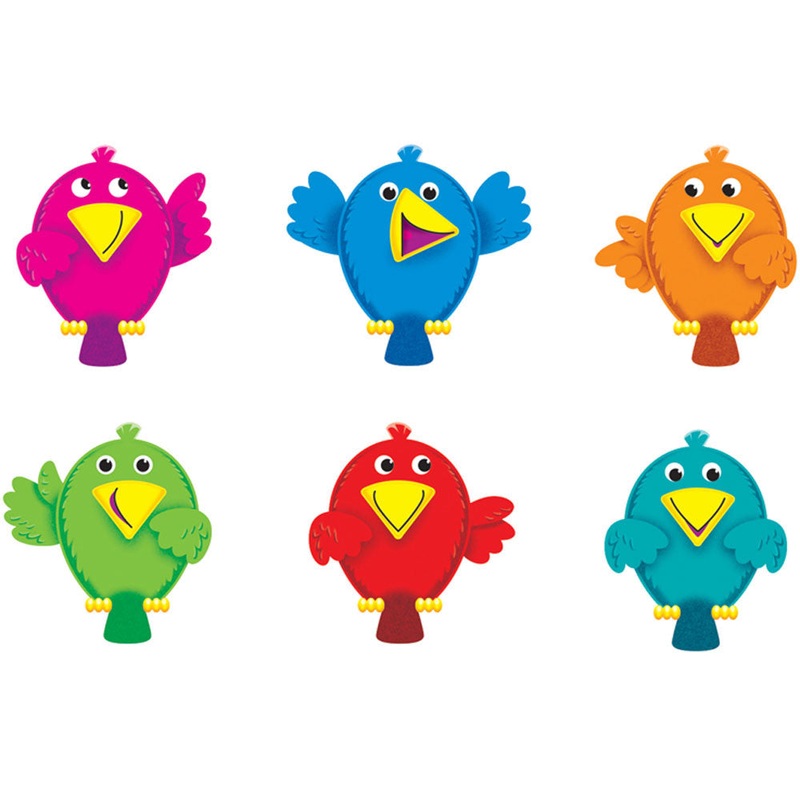 Packed with personality! Lively birds are uniquely designed to hold displays. Use to spread good news and accomplishments, make cheerful name tags, assign job teams, and practice alphabet letters, sight words, and parts of speech. Endless possibilities! 3″ tall, precut & ready to use in red, teal, magenta, blue, orange, and green. Durable & reusable. 6 designs, 36 pieces.