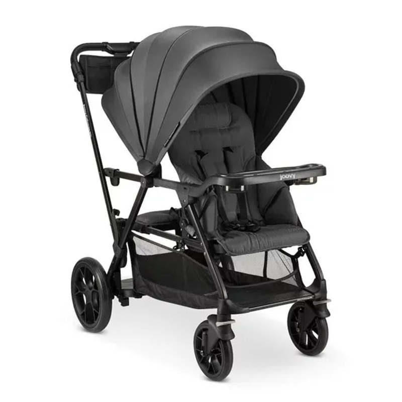 Navigating parenthood presents its challenges, but our joovy Caboose RS Sit and Stand Stroller equips you to handle it all. This exceptional baby stroller stands as a pioneer, seamlessly incorporating a stand-on platform that easily adapts to accommodate a bassinet, rendering it the ultimate choice for both infants and spirited, maturing children. Designed for children aged 3 months and up to 55 lbs., the stroller boasts a removable rear bench seat and an integrated stand-on platform, accompanied by a convenient swing-open snack tray. Safety is paramount with its 5-point harness featuring shoulder pads and magnetic buckles for hassle-free entry and exit. Enhanced maneuverability is facilitated by the extra-large rear wheels and improved all-terrain wheels, while the swivel and lockable front wheels contribute to a smoother ride.