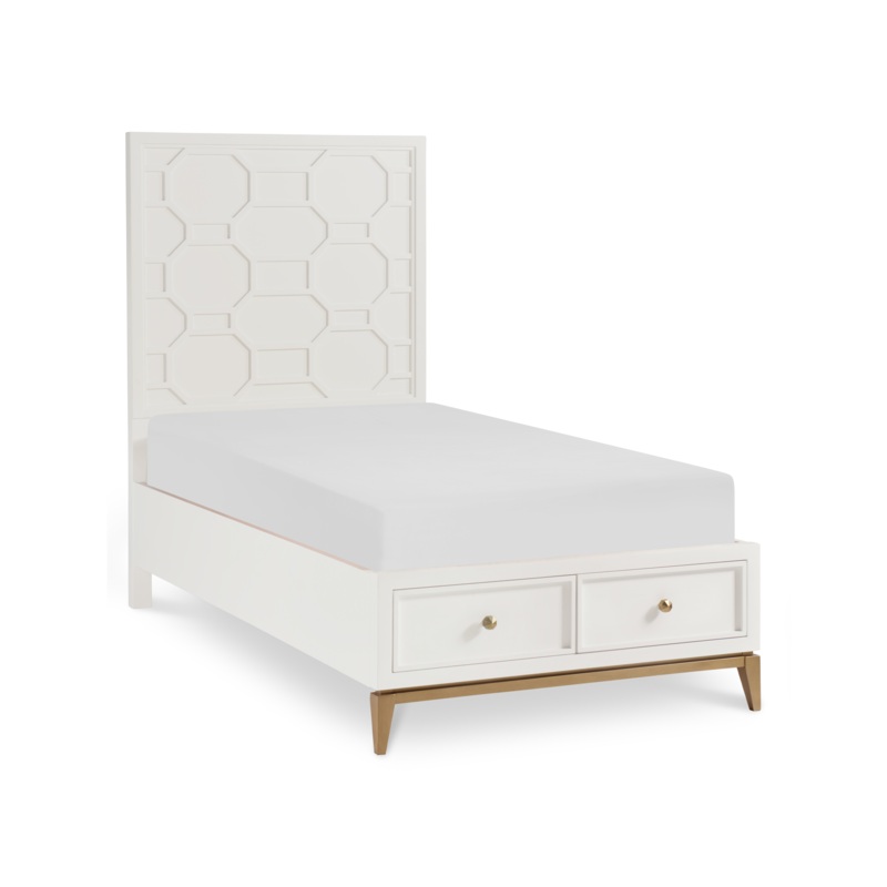 Rachaels Chelsea youth collection is a glamorous, sophisticated grouping that brings her fashion-forward taste to any age. From storage to sleep to study, these modern, intriguing pieces will be loved from a young age to a college dorm room. The clean, transitional lines of the white finish are offset with gold accents and Golden Bronze Finish hardware, making each piece as warm and inviting as it is stylish.