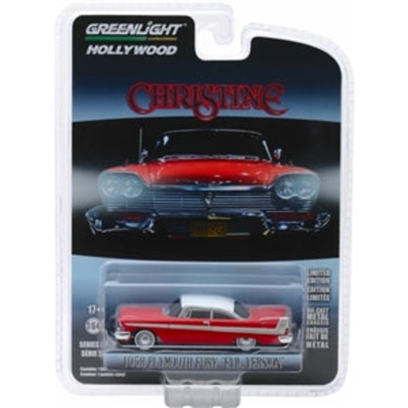 1:64 scale model of1958 Plymouth FuryRed with White Topfrom the movie "Christine" (1983)"Evil Version" (Blacked Out Windows)Die-cast metal body and chassisDimensions approximately 80mm long