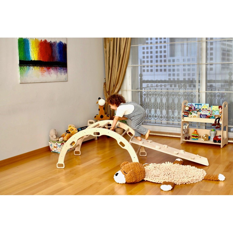 • Wooden Climbing Arch/Rocker: 112cm length x 55cm height x 70cm width / 44″ length x 21.5″ height x 27.5″ width
