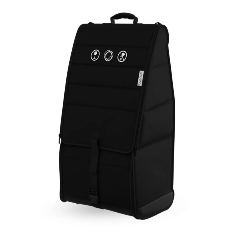 Keep your Bugaboo stroller always protected from water damage and scratches with the Bugaboo comfort transport bag. Featuring comfortable carry handles, shoulder straps, and handy wheels, rolling from the airport baggage claim to a taxi stand will seem like a breeze. The separate bag for the front and rear stroller wheels will keep the bag clean. This transport bag has self-standing mode and folds into a compact size for easy storage when not in use.
