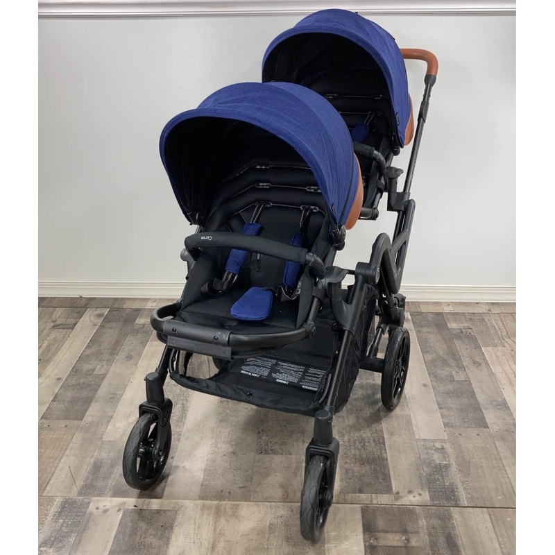 Condition: Open Box "The perfect double stroller that gives you the capacity you need with the maneuverability of a single stroller. Includes 6 wheel design and curb assist making traveling with more a breeze. "