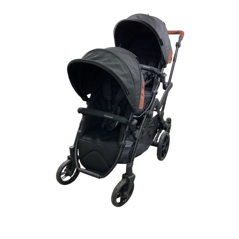 Adjustable double stroller with plenty of configurations for comfort. Can fit up to 2 infant car seats (sold separately). Features adjustable handlebar, and 6 wheels for easy maneuvering.