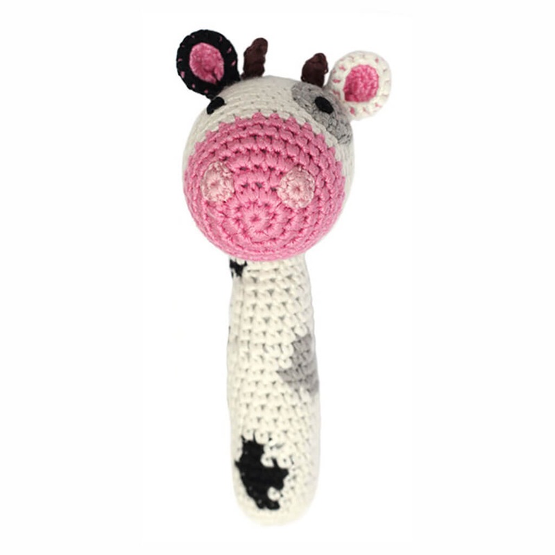 This easy to grasp stick rattle is lovingly hand-crocheted using luxuriously soft yarn derived from the pulp of the organically grown and sustainably harvested bamboo trees. Bamboo is the worlds fastest growing plant (growing 40+ inches in only 24 hours) making it one of the most environmentally sustainable & renewable resources.