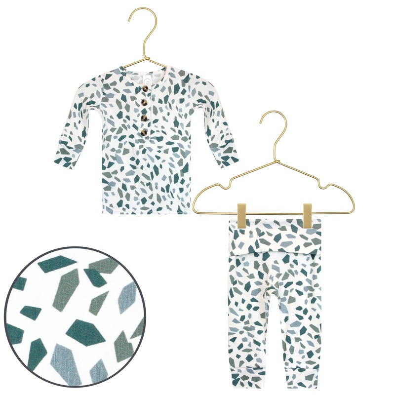 Good things come in pairs and our tops + bottoms are no exception. Theyre made from our signature silky-soft material for a stretchy, comfy fit with functional buttons and fold-over waistband for room to grow (or to wear high-waisted). Say goodbye to socks that slip right off with built-in footies (on the newborn size only) to keep those tiny toes warm without the fuss. Unbelievably sweet mixing & matching approved.
