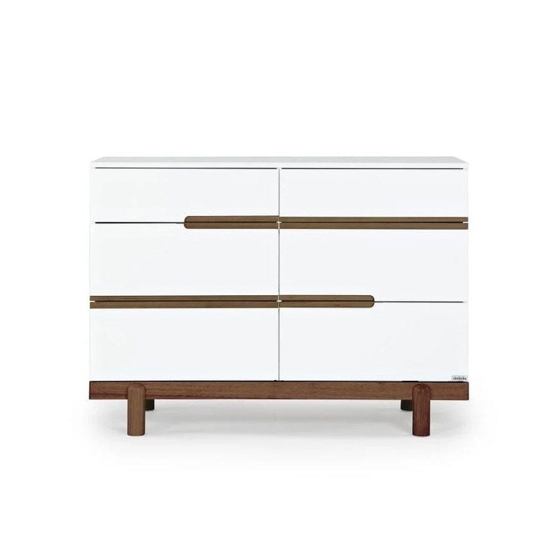A beautiful place for everything: thats the blissful magic of the 47 6-drawer dresser. Secure on its sturdy base of solid rubberwood legs, this innovative dresser design lends cheerful energy to its essential purpose – providing ample storage for all of babys belongings in deep, smooth-gliding drawers. Pair it with a changing table addition to save space in the nursery, or add this playful dresser to any room in your home that needs an infusion of organization and joy.